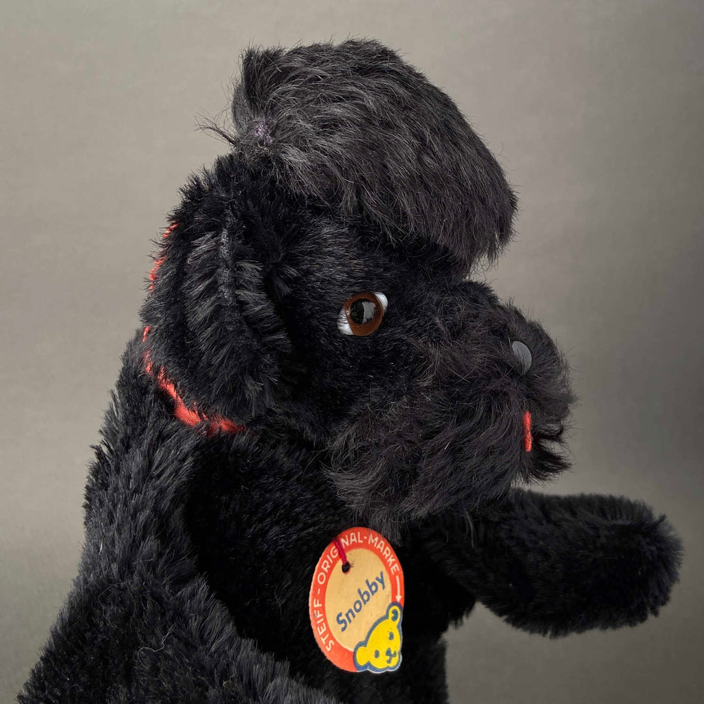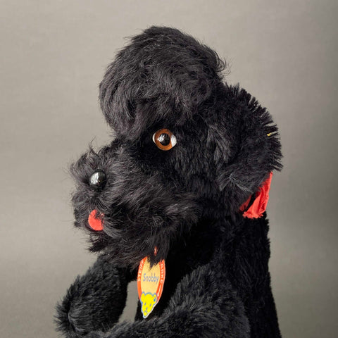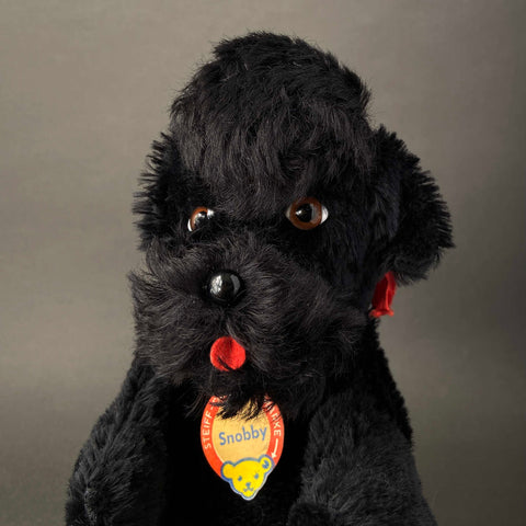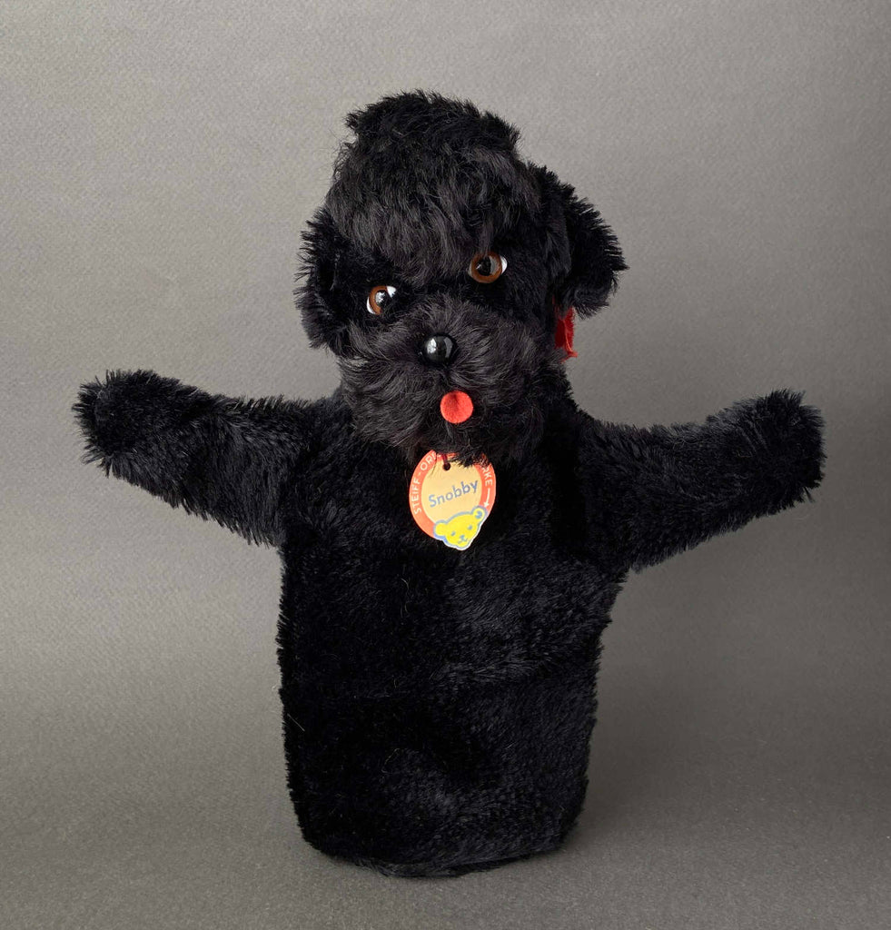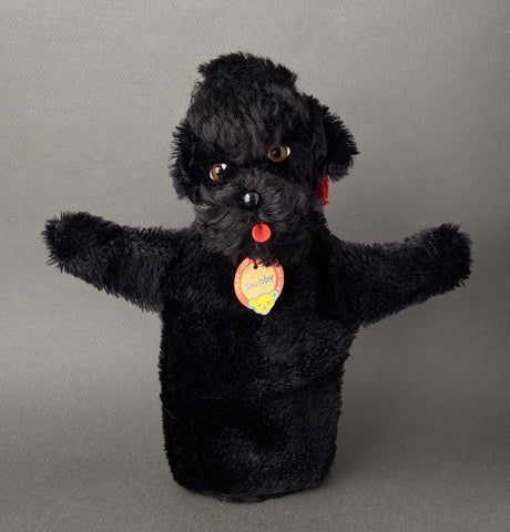 Steiff, the legendary German plush toy company, is famous for its artistry, beauty, and lasting quality. They produced incredible stuffed animals of every type, including super fun hand puppets, like this adorable Snooby Poodle! And this toy is even more special because it was never played with and retains ALL Steiff IDs. Similar to other toys of the time, Snobby was finely handcrafted in Germany between 1959-66 using the nicest mohair. The pictures can't capture how lustrous its plush is. Its endearing look, with "humanized" glass eyes, is an indication of a model from the early 0317,00 series. Snobby's head is stuffed with excelsior (wood wool) and has a cardboard finger tube for movement. Join the worldwide kennel of Poodle enthusiasts and welcome this sweet vintage puppet to your toy collection today!